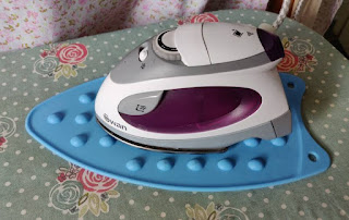 As I am a small project sewist, (prefer that to sewer!), I found that leaving my sewing room and going to the ironing board was a real time waster, and a general faff. I didn't need a big ironing board. So a couple of years ago I set myself up with a mini ironing board bought from Dunelm, entitled a "table top", IKEA also do one, and numerous ones around. (I think I paid around £7).